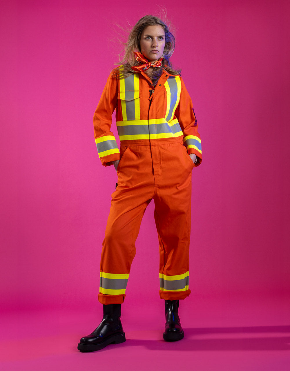 Experience top-tier protection with our Women’s Cotton FR/ARC Coverall. With an HRC 2 rating and ATPV of 9.5 cal/cm2, it meets CAN/CGSB 155.20-2000 and ASTM F1506-10a standards. Featuring double-needle stitching on reflective tape, bar-tacked stress points, and metal protection from the skin, it’s designed for safety. Enjoy comfort with an action back, elasticized waist, and adjustable wrists and ankles. Practical pockets include one flap chest patch pocket, two waist patch pockets with side access, two rear hip patch pockets, and a tool pocket on the right leg.